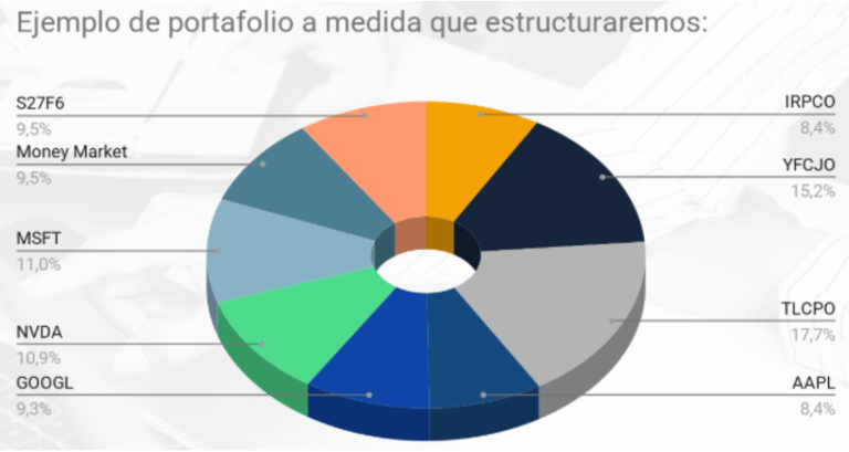 (El ejemplo es ilustrativo no representa la cartera definitiva, el fin es que sirva como guía para entender cómo gestionamos los excedentes de nuestros clientes diversificando el riesgo de instrumento y de moneda)